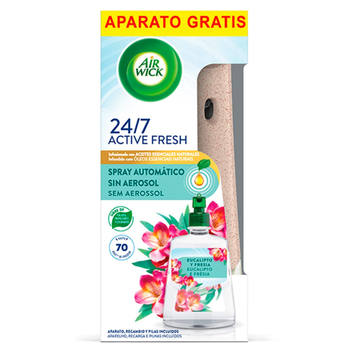 Ambientador automático que proporciona un aroma fresco y agradable, eliminando olores desagradables y mejorando la calidad del aire interior. Este recambio de 228 ml combina la frescura del eucalipto con la dulzura de la fresa, ideal para quienes buscan un ambiente ligero y perfumado. Su uso es práctico y continuo, ya que se integra con un dispositivo especializado que libera el aroma a intervalos regulares. Con aceites esenciales naturales en algunas variantes, este ambientador asegura un aroma duradero y refrescante, contribuyendo a un entorno más placentero.