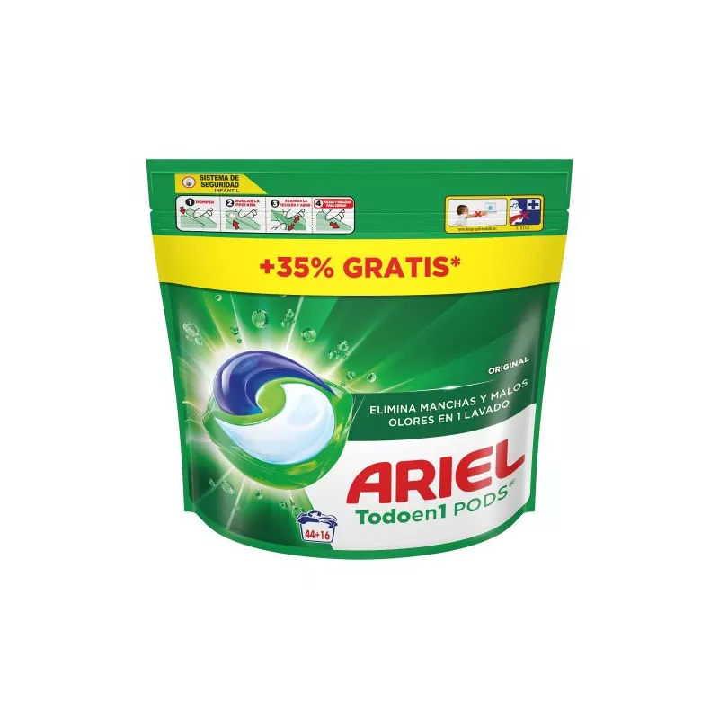 Detergente que ofrece una limpieza profunda y efectiva, eliminando manchas difíciles y proporcionando un aroma fresco y duradero. Su fórmula avanzada permite el lavado en frío, ahorrando energía y protegiendo los tejidos. Cápsulas fáciles de usar, que se disuelven rápidamente en agua, garantizando una distribución uniforme del detergente. Ideal para todo tipo de prendas, incluso las más delicadas, y sin necesidad de medir ni dosificar. Elimina la suciedad y brinda frescor, asegurando resultados óptimos en cada lavado.