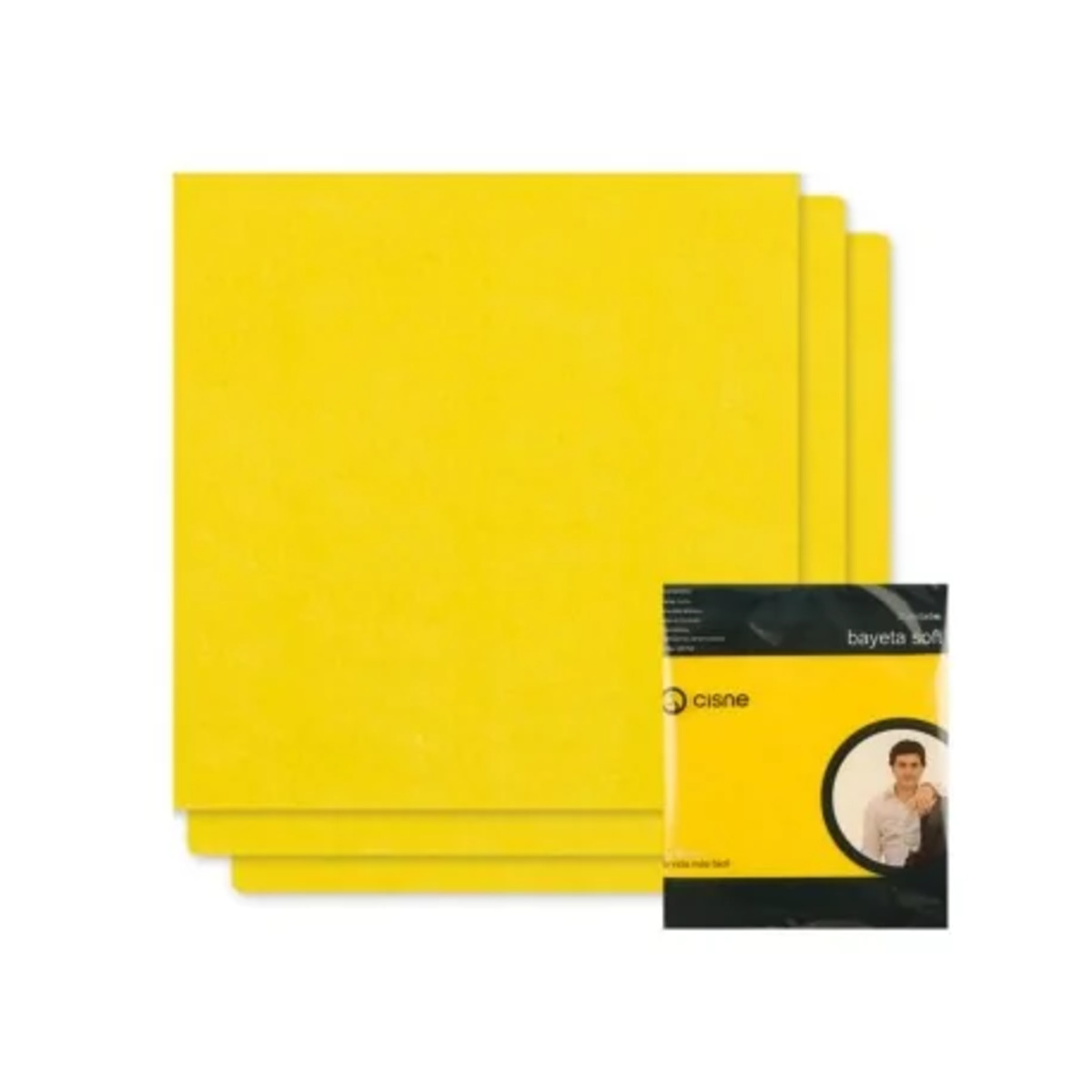 Modo de empleo: Utilizar con agua y detergente para limpiar superficies. Formato: Pack de 3 unidades de bayetas amarillas suaves.