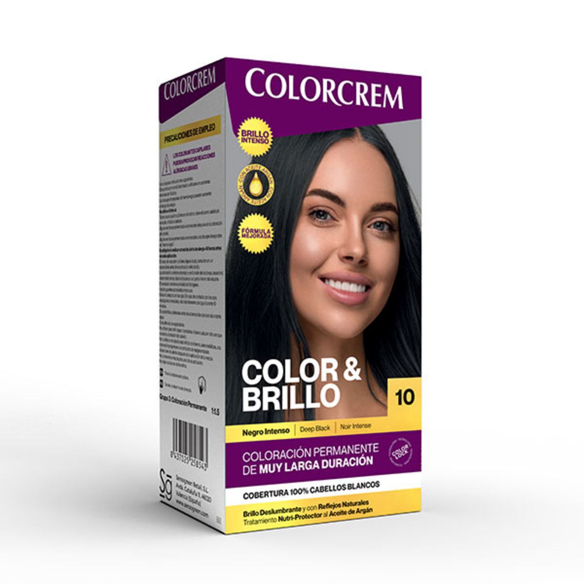 Coloración permanente que proporciona un color negro intenso y duradero, ideal para quienes buscan una cobertura total de los cabellos blancos. Este tinte en crema facilita la aplicación y asegura un resultado uniforme, gracias a su tecnología de coloración avanzada. Enriquecido con aceite de Argán, no solo tiñe, sino que también protege e hidrata el cabello durante el proceso, manteniéndolo saludable y brillante. Su fórmula está diseñada para ofrecer una durabilidad excepcional del color, asegurando que luzcas un cabello vibrante y lleno de vida por más tiempo.