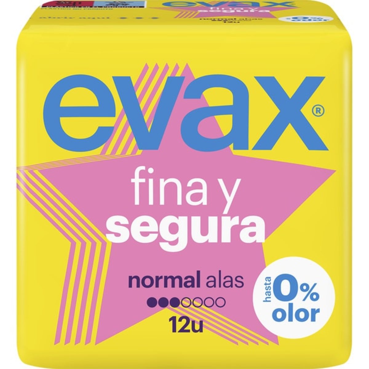 Composición de Evax Fina y Segura Compresa con Alas Normal Bolsa 12 Unidades: