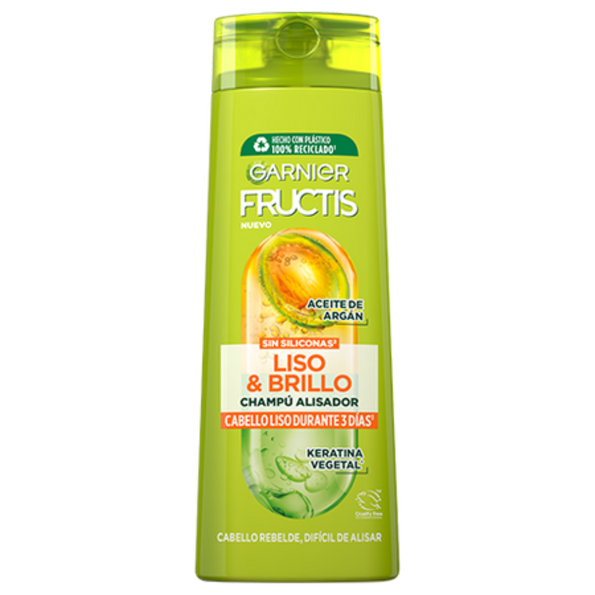 Champú fortificante Liso & Brillo con keratina vegetal y aceite de Argán para cabello difícil de alisar anti-encrespamiento.