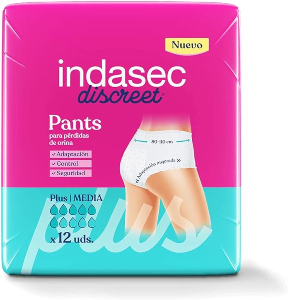 Indasec Pants Plus es una protección absorbente para pérdidas de orina moderadas a severas. Talla mediana, con 12 unidades en cada paquete.
