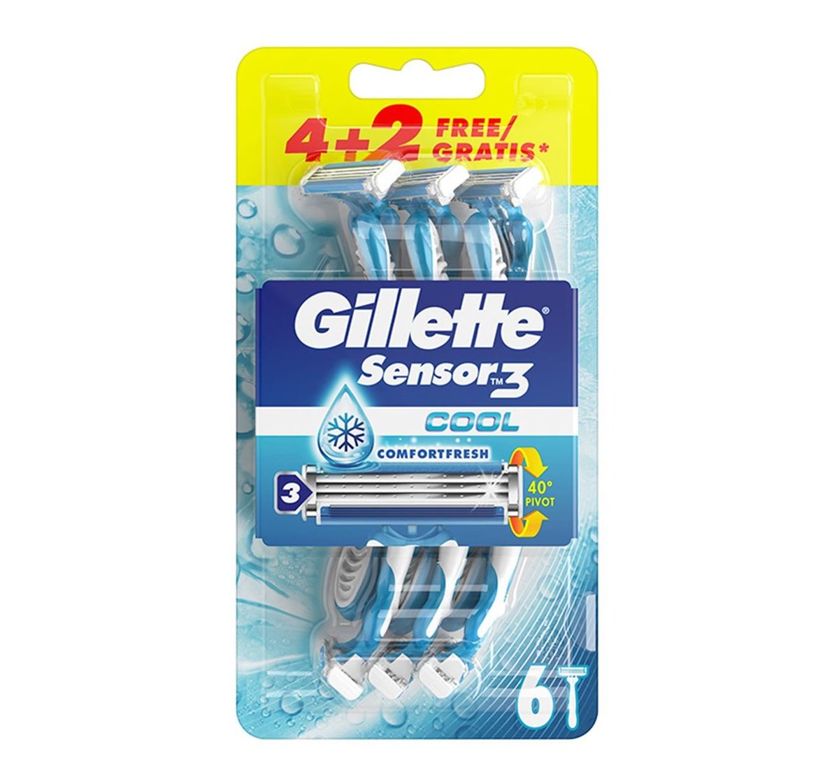 / Maquina Desechable Sensor3 6 Unidades Cool Gillette