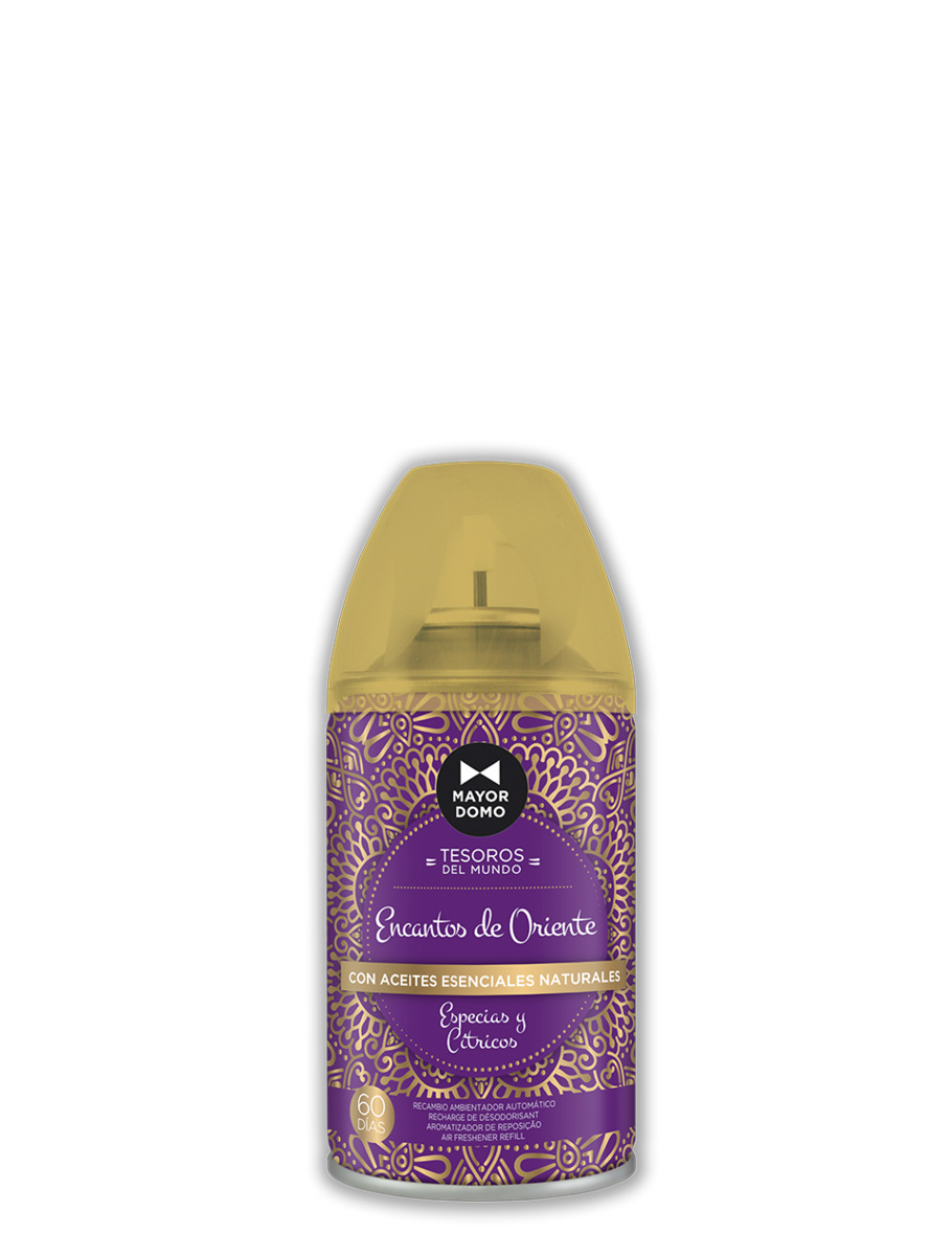 Modo de empleo: Colocar el recambio en el dispensador automático y programar la frecuencia de pulverización. Formato: Aerosol de 250 ml.