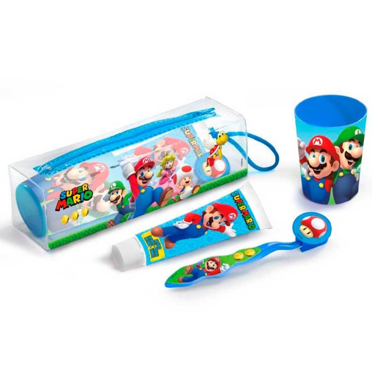 Más info de Neceser Super Mario Bucal Dentifrico + Cepillo Dental + Vasito