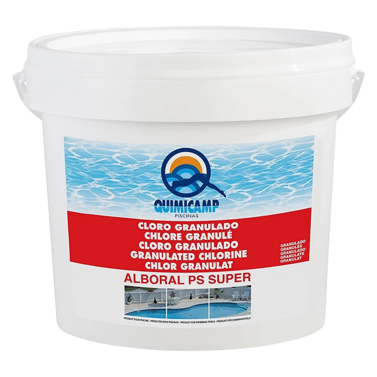 Modo de empleo: Disolver la cantidad recomendada en agua y distribuir por la piscina de manera uniforme.