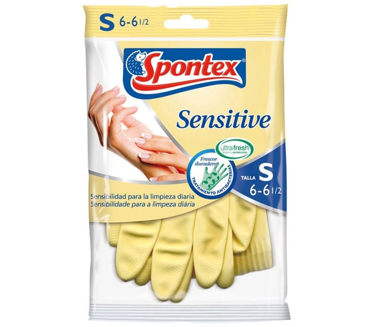 Modo de empleo: Utilizar para tareas de limpieza en el hogar. Formato: Paquete de guantes tamaño T-6 1/2 pequeña.