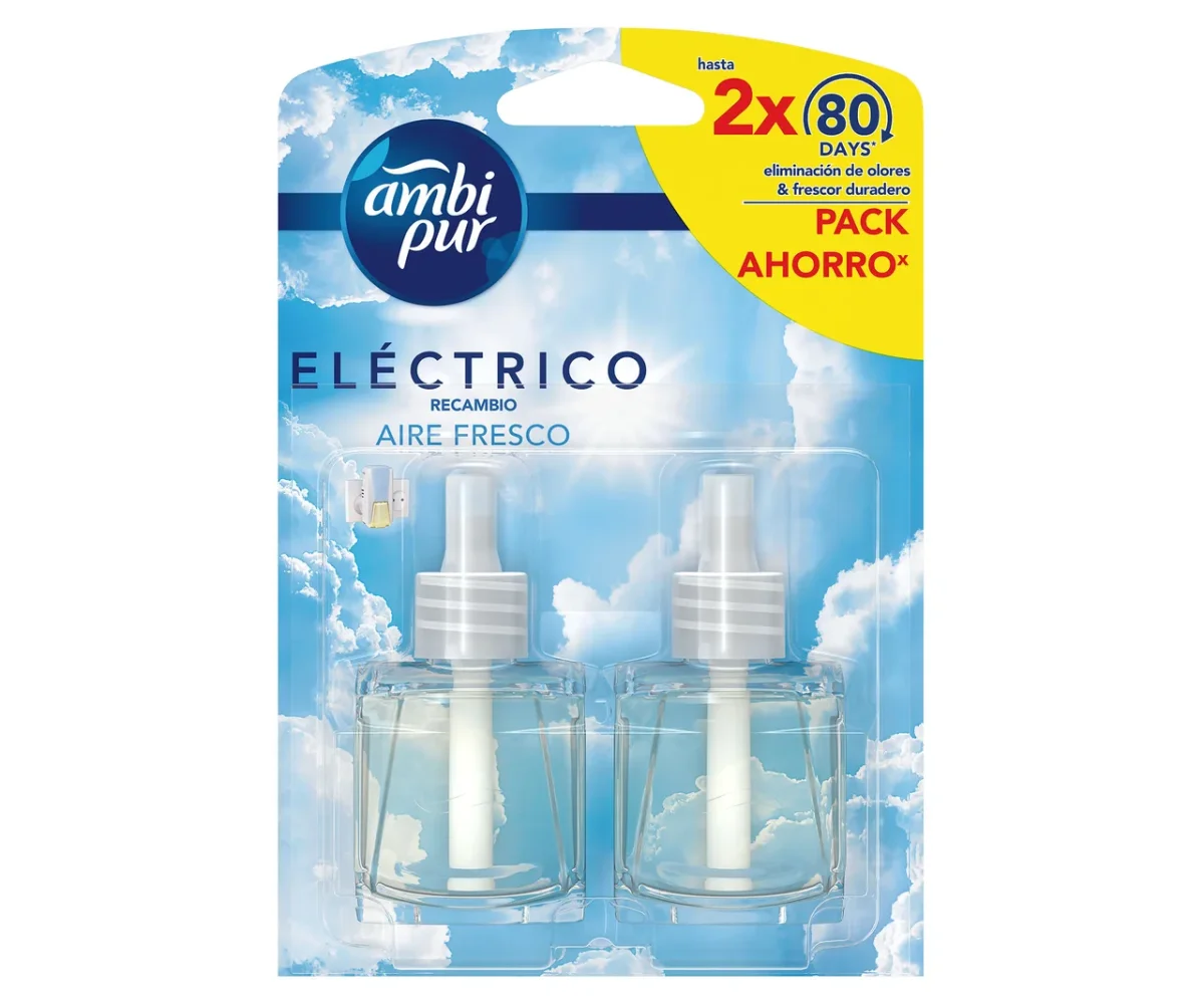 - Lote de 2 recambos líquidos para ambientador elétrico de tomada, compatíveis com difusores Ambipur.